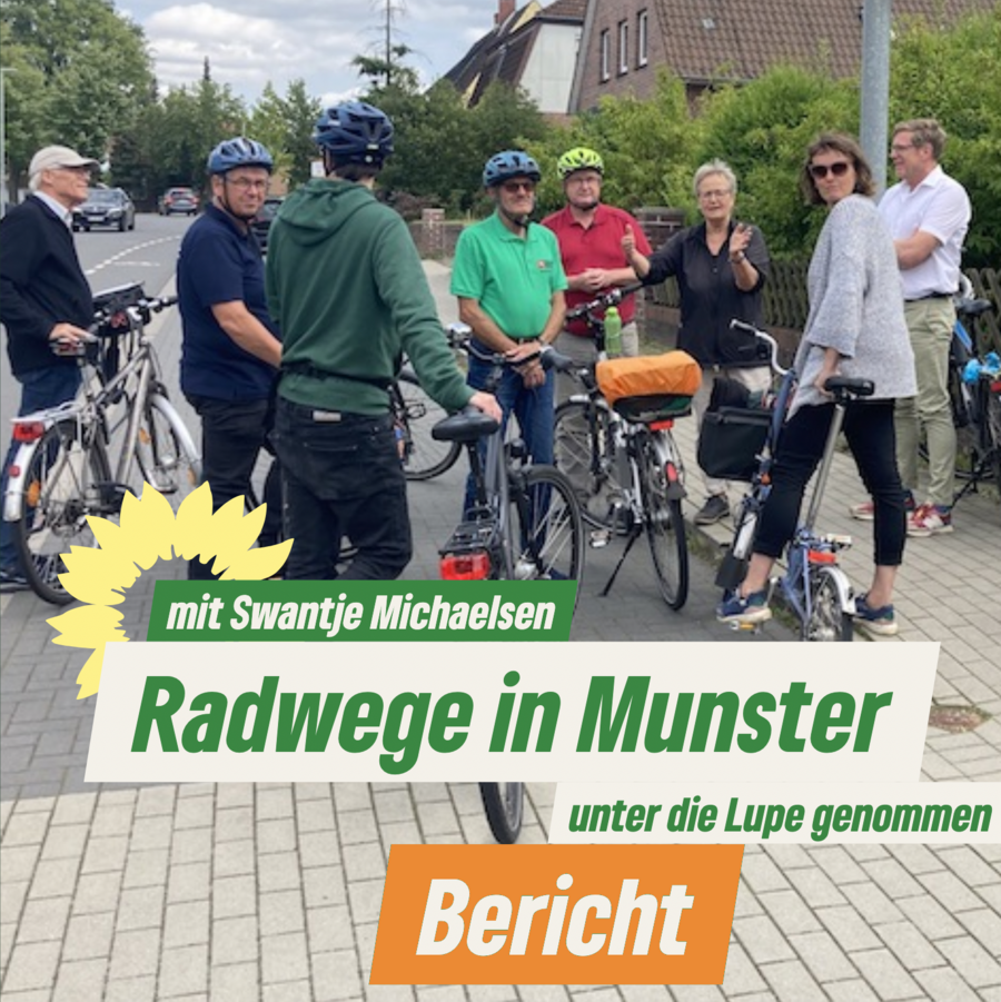 Wir GRÜNE in Munster arbeiten immer wieder gern mit dem ADFC Heidekreis zusammen, um die Bedürfnisse der Radfahrenden in unserer Stadt zu verbessern. Zuletzt haben wir zusammen mit der Bundestagsabgeordneten Swantje Michaelsen die Radwege in Munster unter die Lupe genommen. (> Hier geht es zu unserem Bericht)