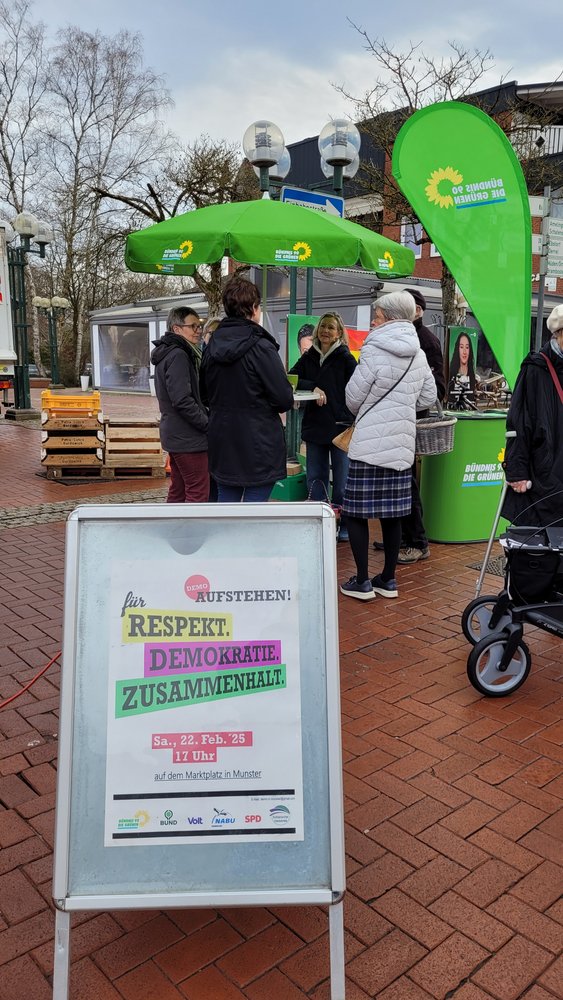 Der Wahlkampfauftakt auf dem Markt war ein echtes Highlight. Viele Gespräche, viel Zuspruch und trotz Minusgraden beste Stimmung. Unterstützt wurden wir unter anderem von unserer Bundestagskandidatin Canina Ruzicka, die den Weg nach Munster fand, um mit den Bürgerinnen und Bürgern direkt ins Gespräch zu kommen. Ihre klare Haltung zu Klimaschutz, ländlicher Entwicklung und sozialer Gerechtigkeit kam gut an, genauso wie ihre Offenheit im Dialog.