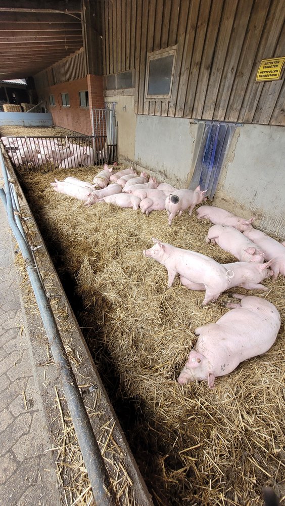 Jan hält rund 300 Schweine und etwa 40 Kühe inkl. Kälbern mit einem Bullen (Limousin/Angus Rinder).