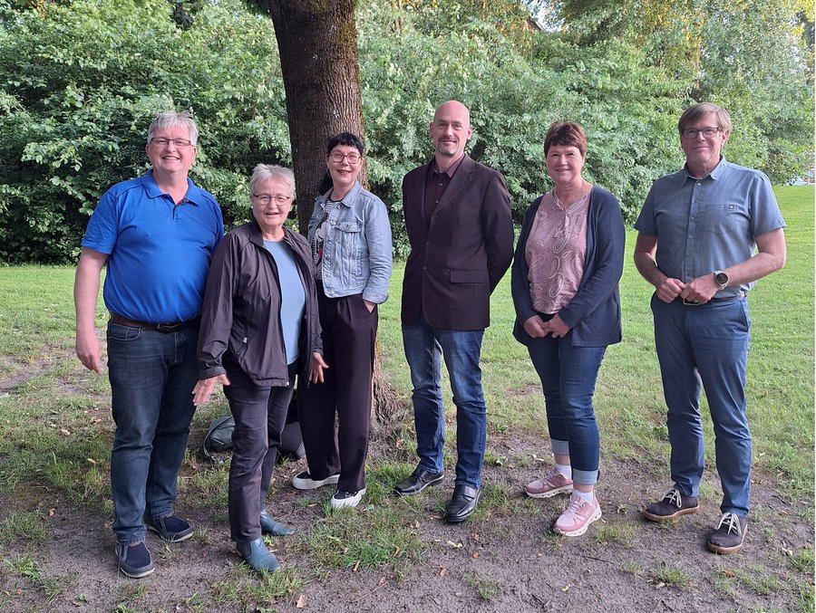 Auf dem Foto aus der Fraktion Uta von Loh, Sven Wolff sowie Harved Scheiger und in der Mitte aus dem Ortsverband B´90/GRÜNE: Beate Spieker, die seit drei Jahren als sachkundige Bürgerin wertvolle Arbeit im Bau-, Klima- und Umweltausschuss leistet sowie die beiden neuen sachkundigen Bürger*innen Martina Habermann und Sven Sennert.
